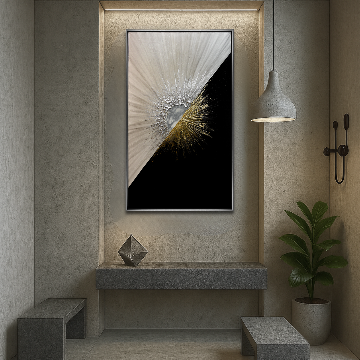 Captura el movimiento continuo y la infinita fluidez de la creación. La composición transmite una sensación de dinamismo y profundidad, evocando la idea del flujo constante del tiempo.