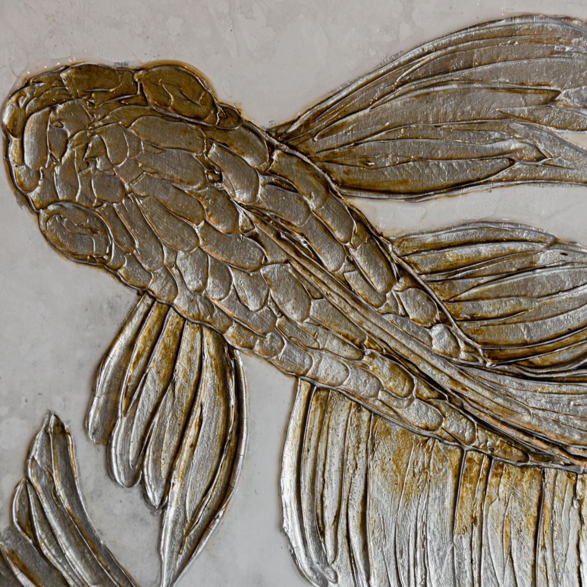 Dos formas que no se tocan, pero se reconocen. Su movimiento es un diálogo sin palabras, una danza hecha de intuición y entrega. En este espacio líquido y luminoso, el encuentro no es físico: es energía compartida, es armonía que flota y se transforma.