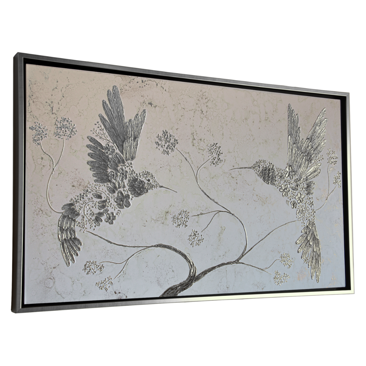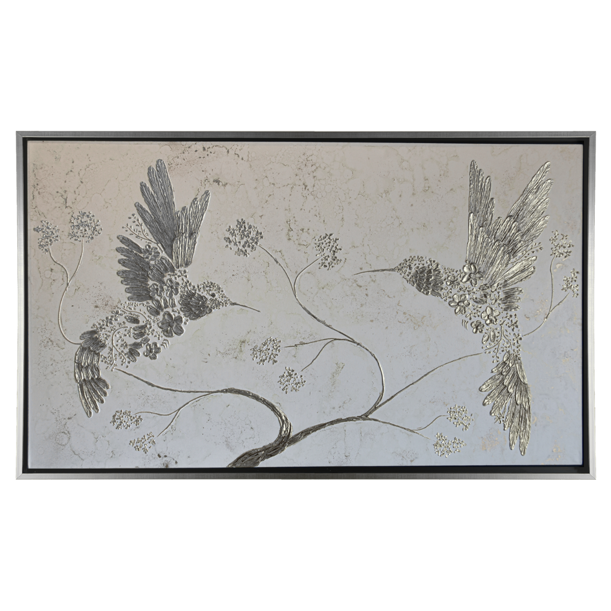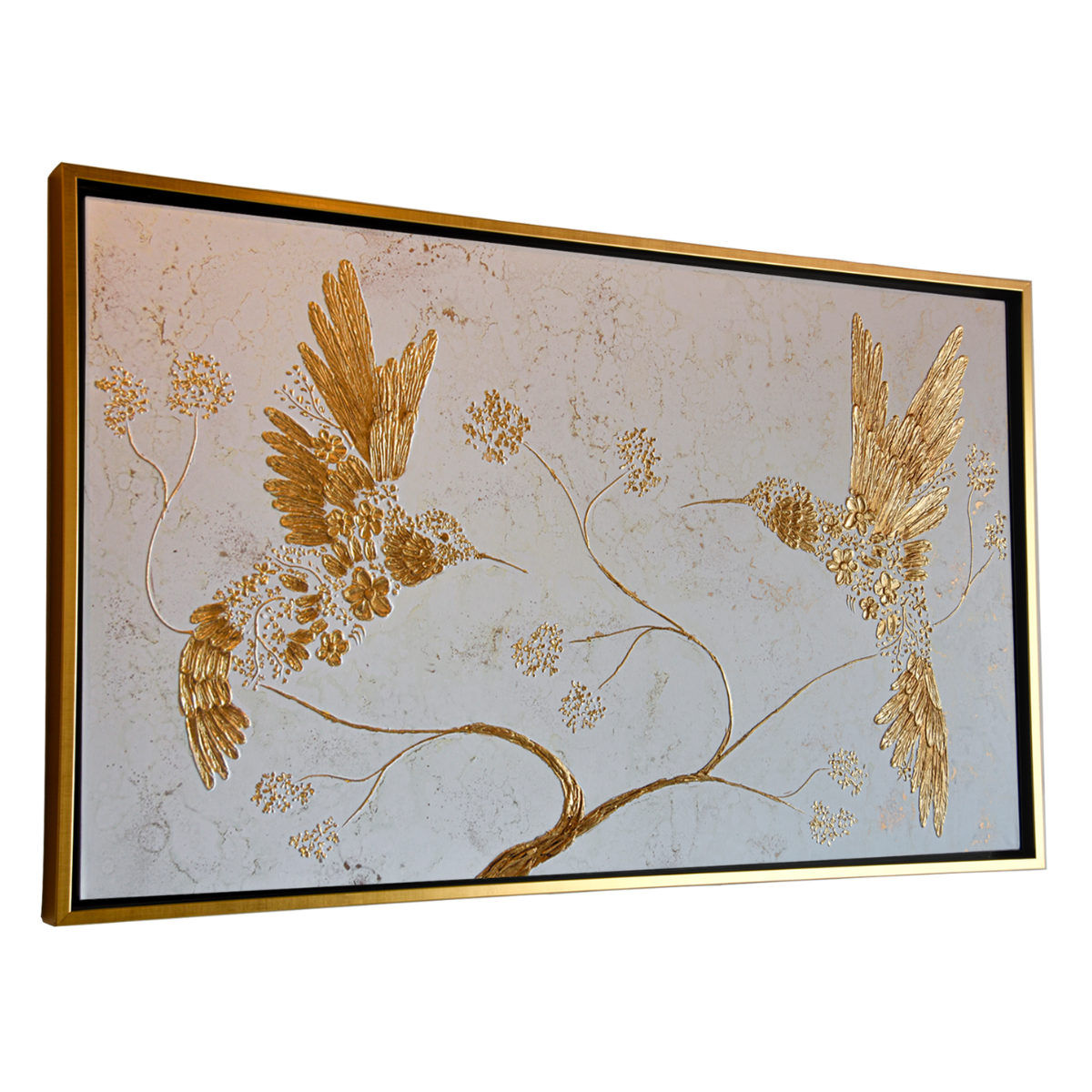 Dos colibríes se detienen frente a frente, unidos por una misma rama. Sus alas abiertas y cuerpos tensos marcan el instante exacto donde la distancia se reduce al mínimo, y el equilibrio entre movimiento y quietud se hace visible.